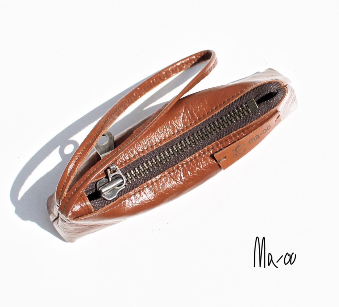 Cognac brown zipper pouch / Leather wristlet – Mini make- up purse