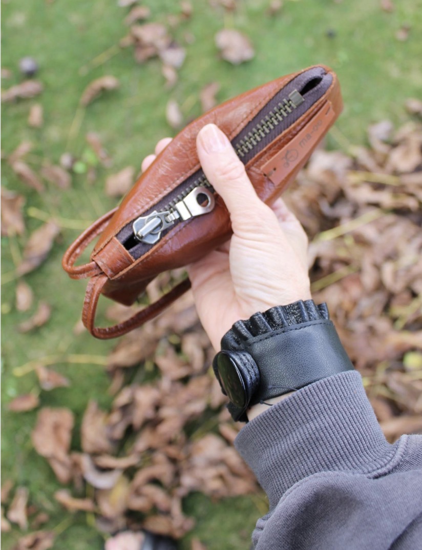 MATERIALE : Fint , blødt Japansk kalveskind og Kraftig YKK – Skindet er blevet afstivet så den faconen holder.